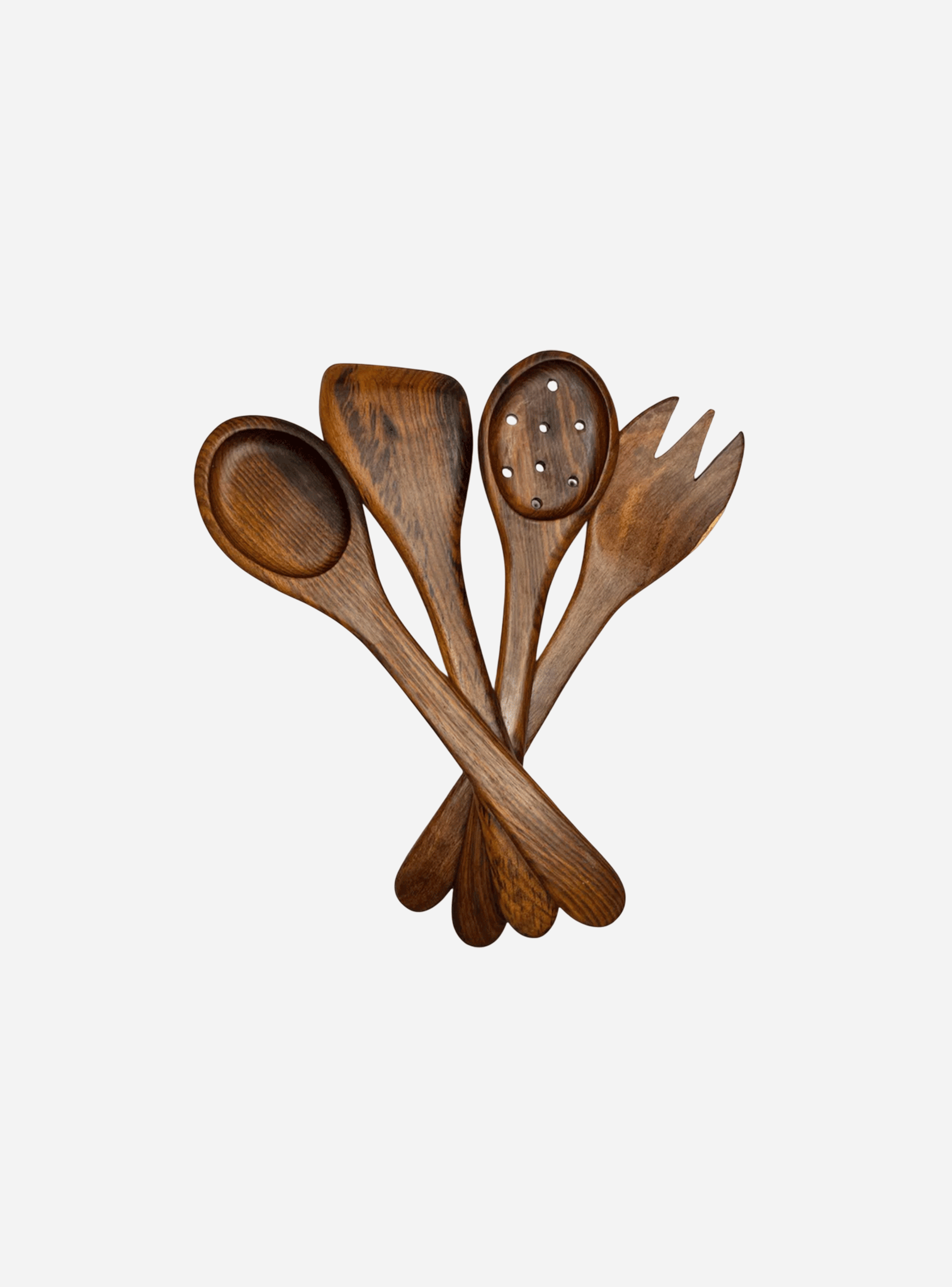 Подобрете кухненското си изживяване с универсалния комплект от четири дървени прибора на Aneya. Този внимателно подбран комплект включва лъжица, цедка, шпатула и вилица, всяка от които е изработена от естествено дърво Асерсус. Проектирани както за сервиране, така и за готвене, тези прибори внасят рустик чар във вашата кухня. Независимо дали се използват за бъркане, загребване или сервиране, този комплект е задължителен за всеки домашен готвач.