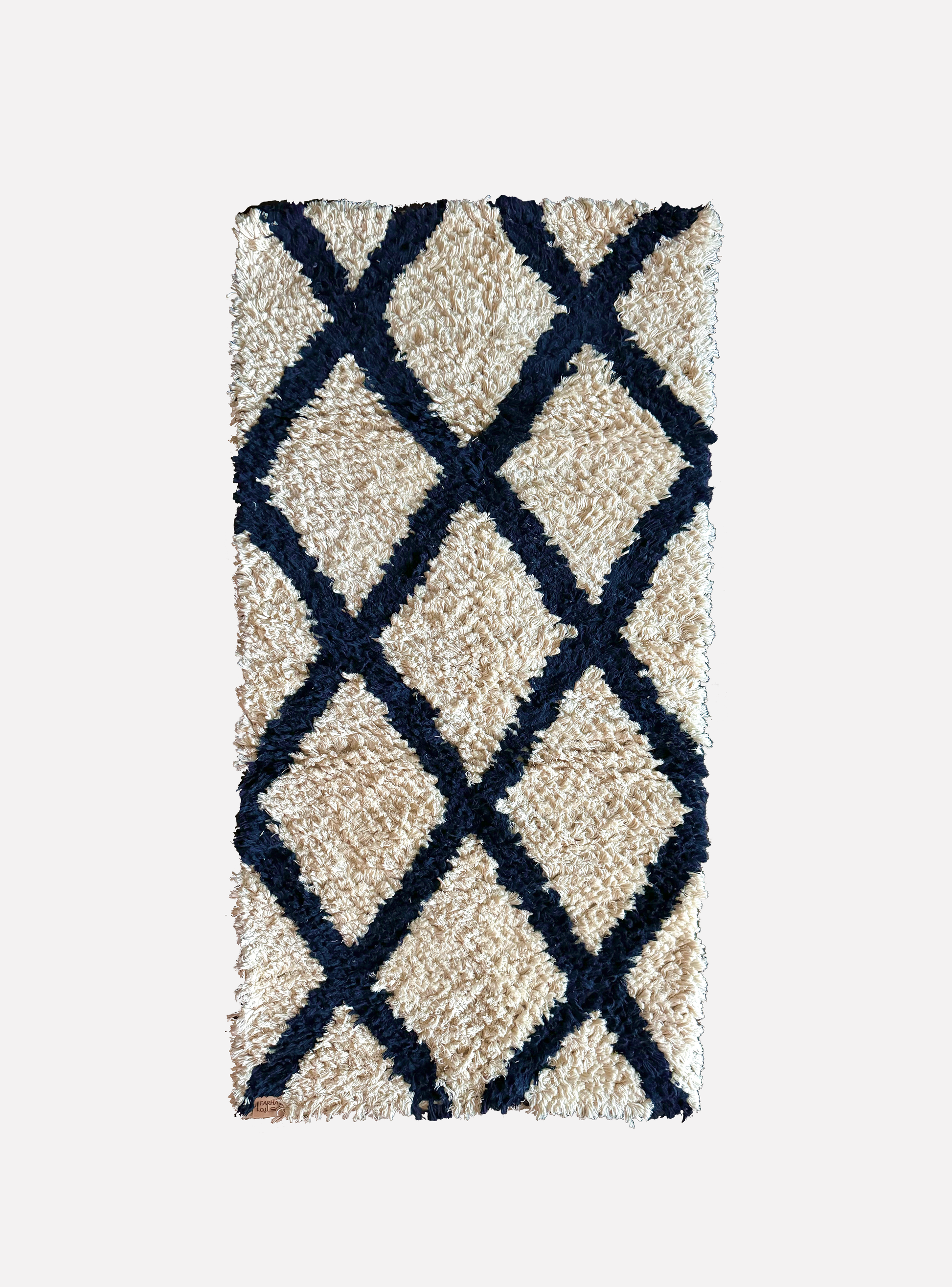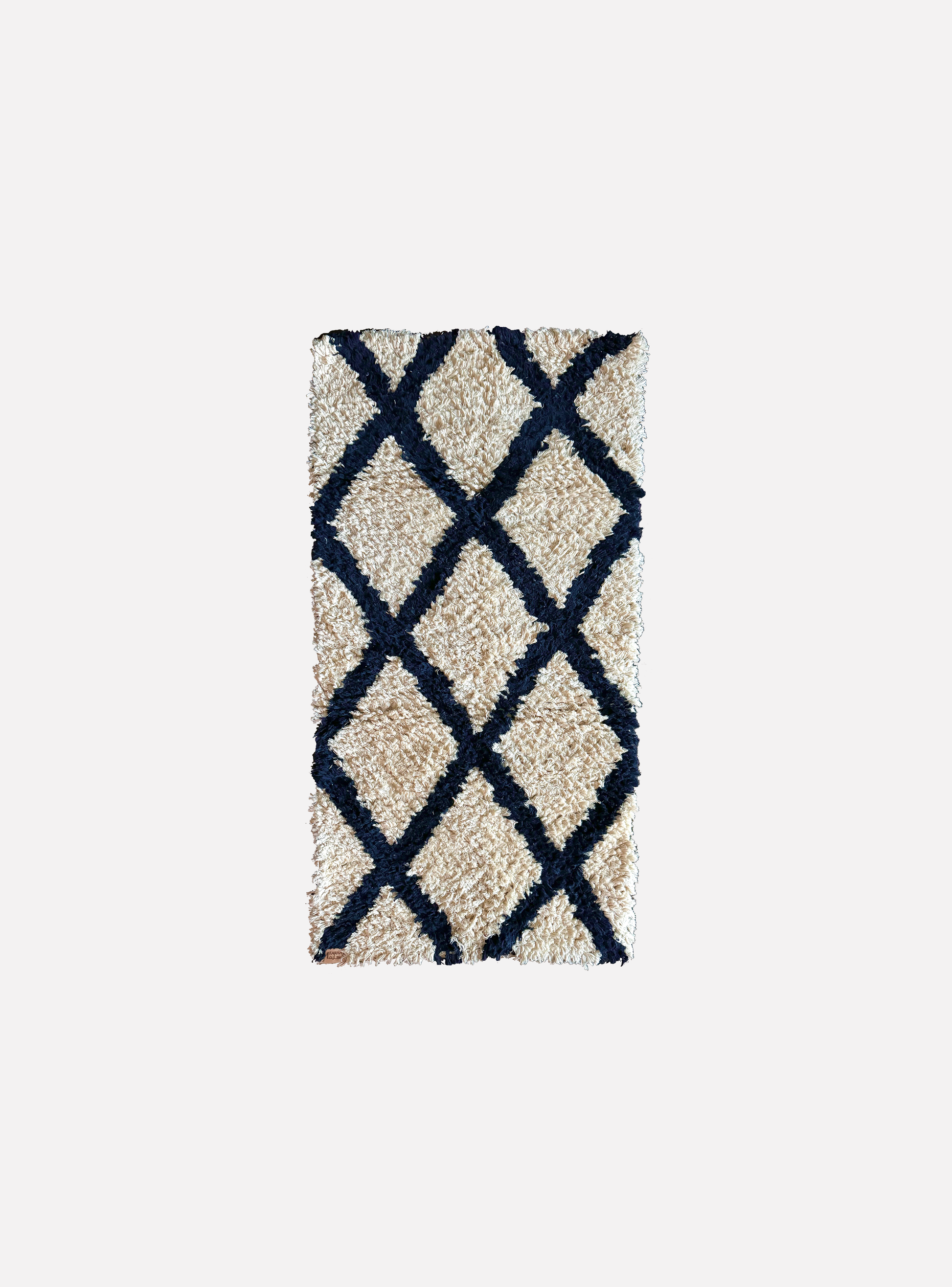 Внесете вечна елегантност в дома си с ръчно тъкания килим Diamond Lattice от Kilim Farha. Изработен от умели египетски майстори, този ръчно изработен килим съчетава мека вълна и издръжлив памук, за да създаде луксозна текстура. С наситен тъмносин диамантено-решетъчен мотив върху кремаво-слонова основа, той е идеалният акцент за вашата всекидневна, спалня или коридор, съчетавайки традиция със съвременен чар.