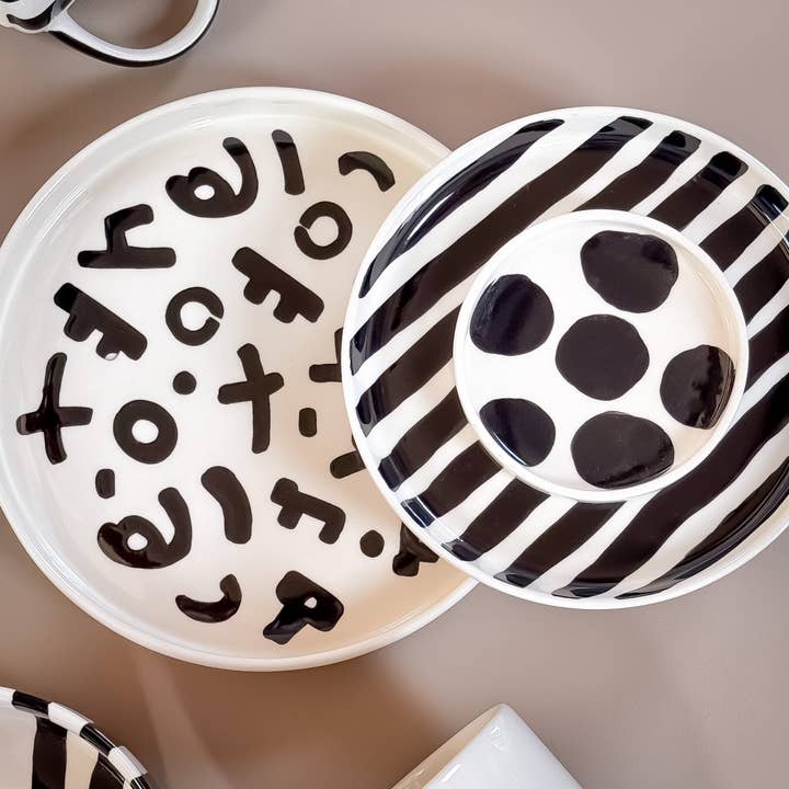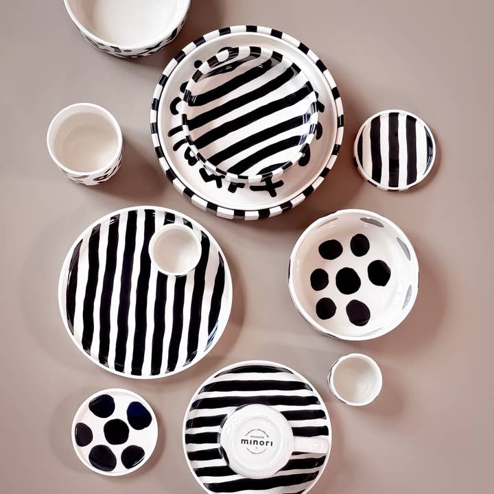 Еспресо комплектът впечатлява с игривия си дизайн от неравномерни точки — нов графичен модел, който перфектно допълва нашата колекция и вдъхновява за смесване и комбиниране на различни шарки. Всяко изделие е ръчно изработено и уникално – всяка точка и глазура са нанесени внимателно на ръка, създавайки усещане за автентичност и уют. Чашата за еспресо е мини версия на голямата кафе чаша, а блюдцето с гладка повърхност без вдлъбнатина е идеално и за малка закуска или бисквитка. Двата комплекта (4 броя) са опаковани заедно в устойчива и естетична опаковка.
