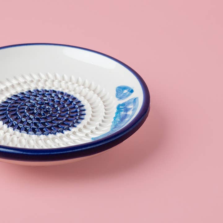 Малка чинийка-ренде, която прави големи чудеса в кухнята. За секунди настъргвате чесън за ароматни дресинги, джинджифил за свежи маринати, индийско орехче или шоколад за финален щрих — и още много. Керамичната повърхност не окислява продуктите и не променя вкуса им, така че ароматът и свойствата се запазват. Компактният формат е удобен за малки количества и стои красиво и на плота, и на масата. Безопасна е и за деца — не реже пръстите, а готвенето се превръща в игра.