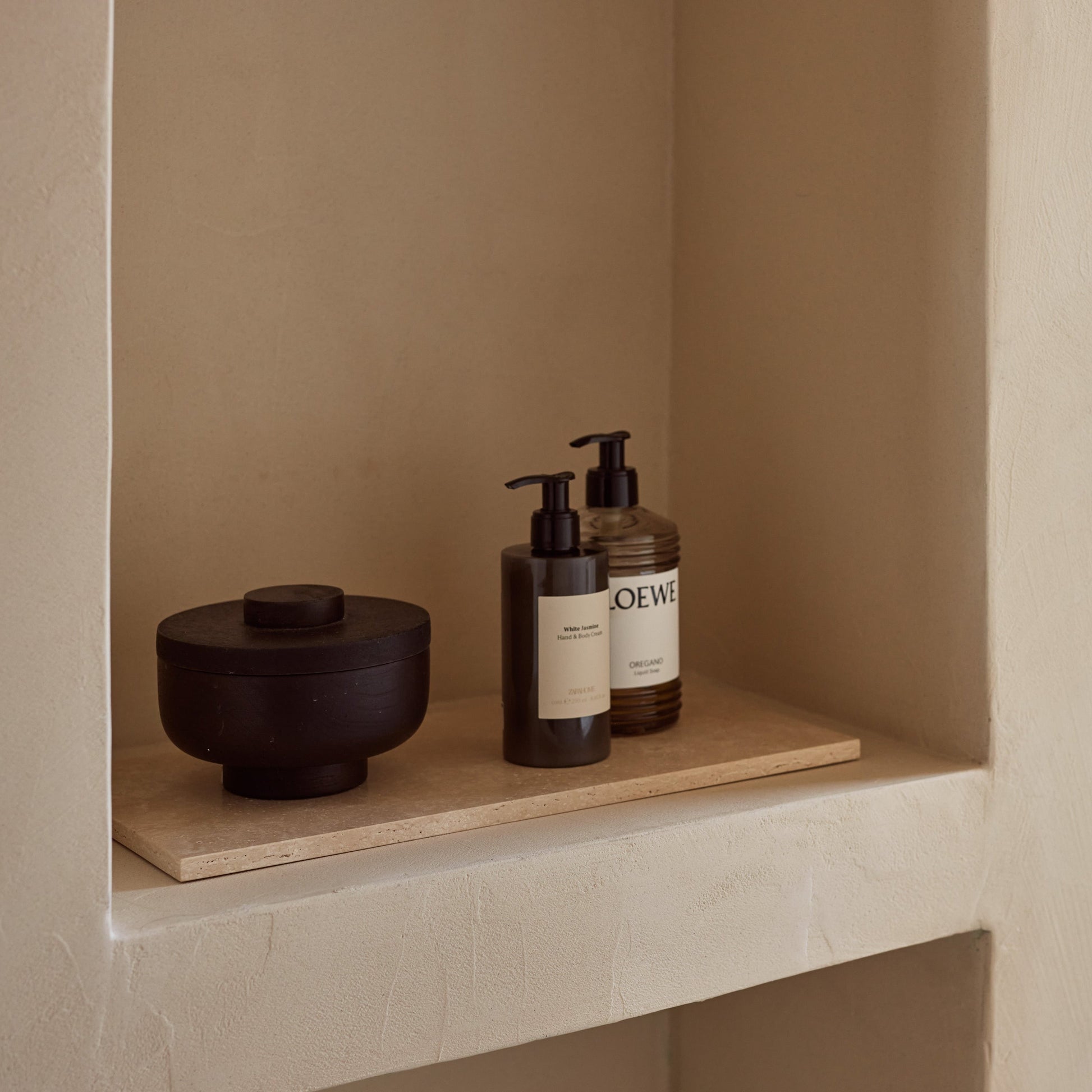 Просторен поднос от травертин за впечатляващи аранжировки. Изрязан от естествена каменна плоча и полиран до гладкост. Перфектен за трапезна маса, конзола или плот в банята. Всяко парче е уникално.
